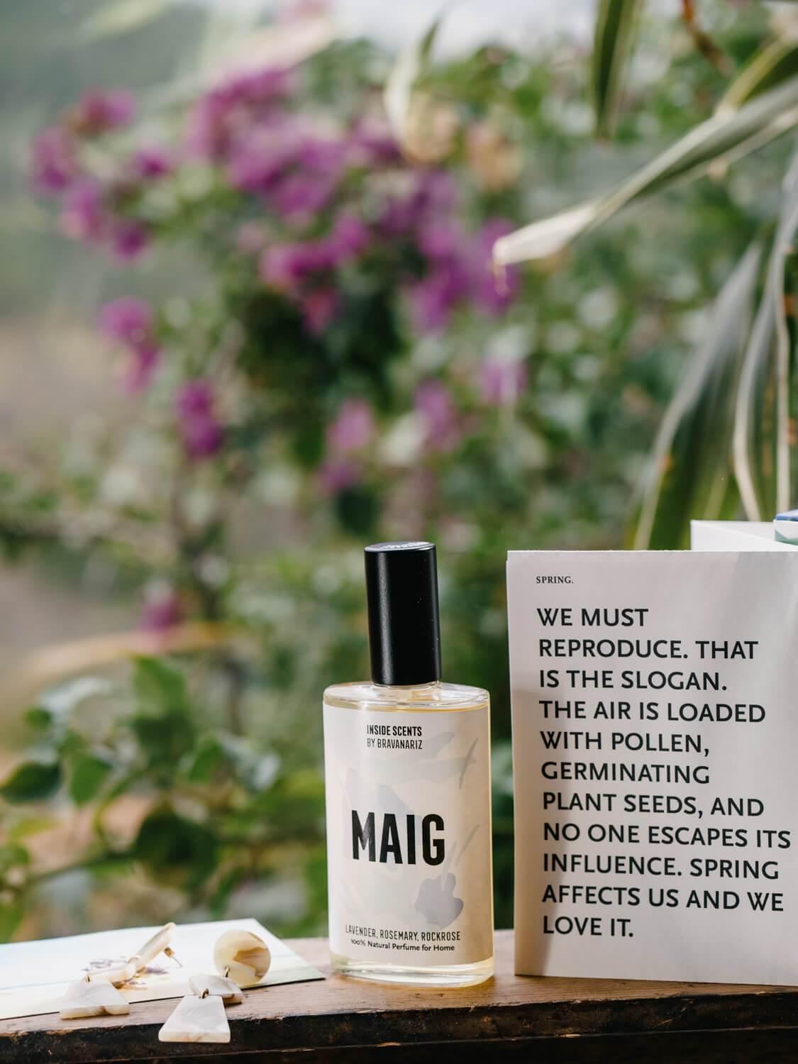 Maig is hoe de beloftevolle lente ruikt in de Empordà, het gebied waar oprichter van Bravanariz vandaan komt. Door de natuur in elk seizoen te ruiken, maakt hij contact met de natuur van binnen. Met deze geheel natuurlijke roomspray nodigt hij je uit hetzelfde te doen. Maig is Catalaans voor de maand mei wanneer de natuur vol staat van de belofte van een nieuw begin.