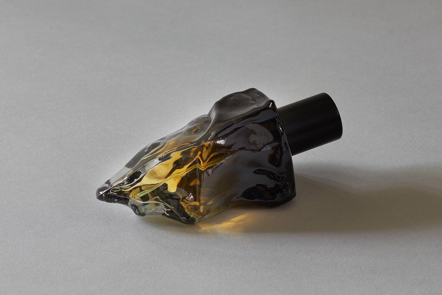 The glass bottle was made with the use of 3D printing techniques, resulting in a truly unique design.