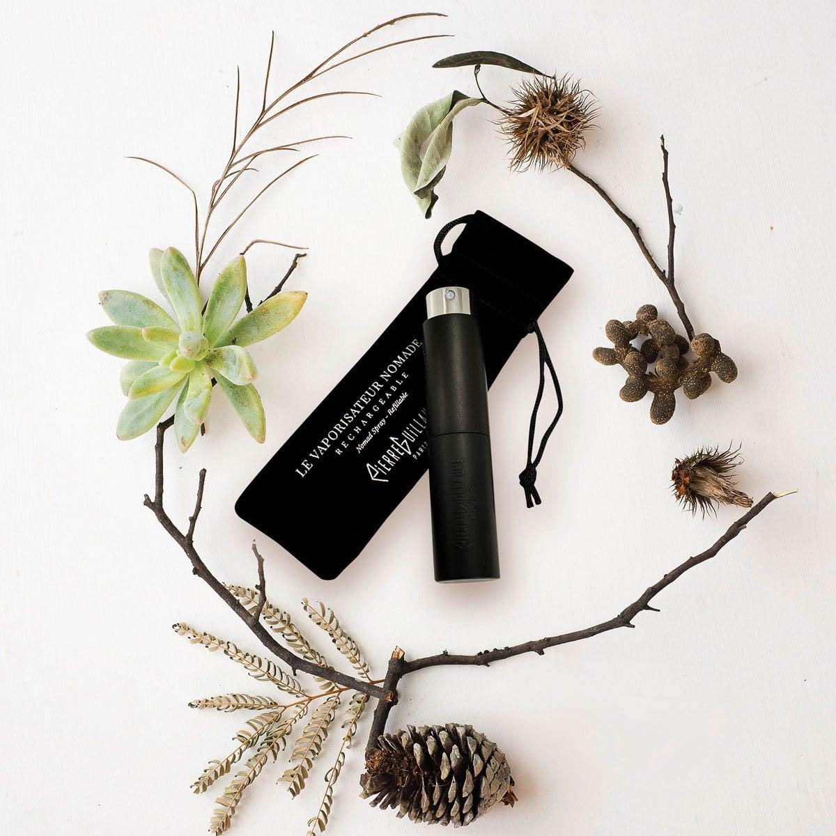Chique and ingenious Nomad purse spray by Pierre Guillaume. This smart and compact bag atomizer is easy to use and refill. Thanks to the elegant design, you can practically and safely take 8 ml of your favorite perfume with you wherever you go, also in your hand luggage on a plane.