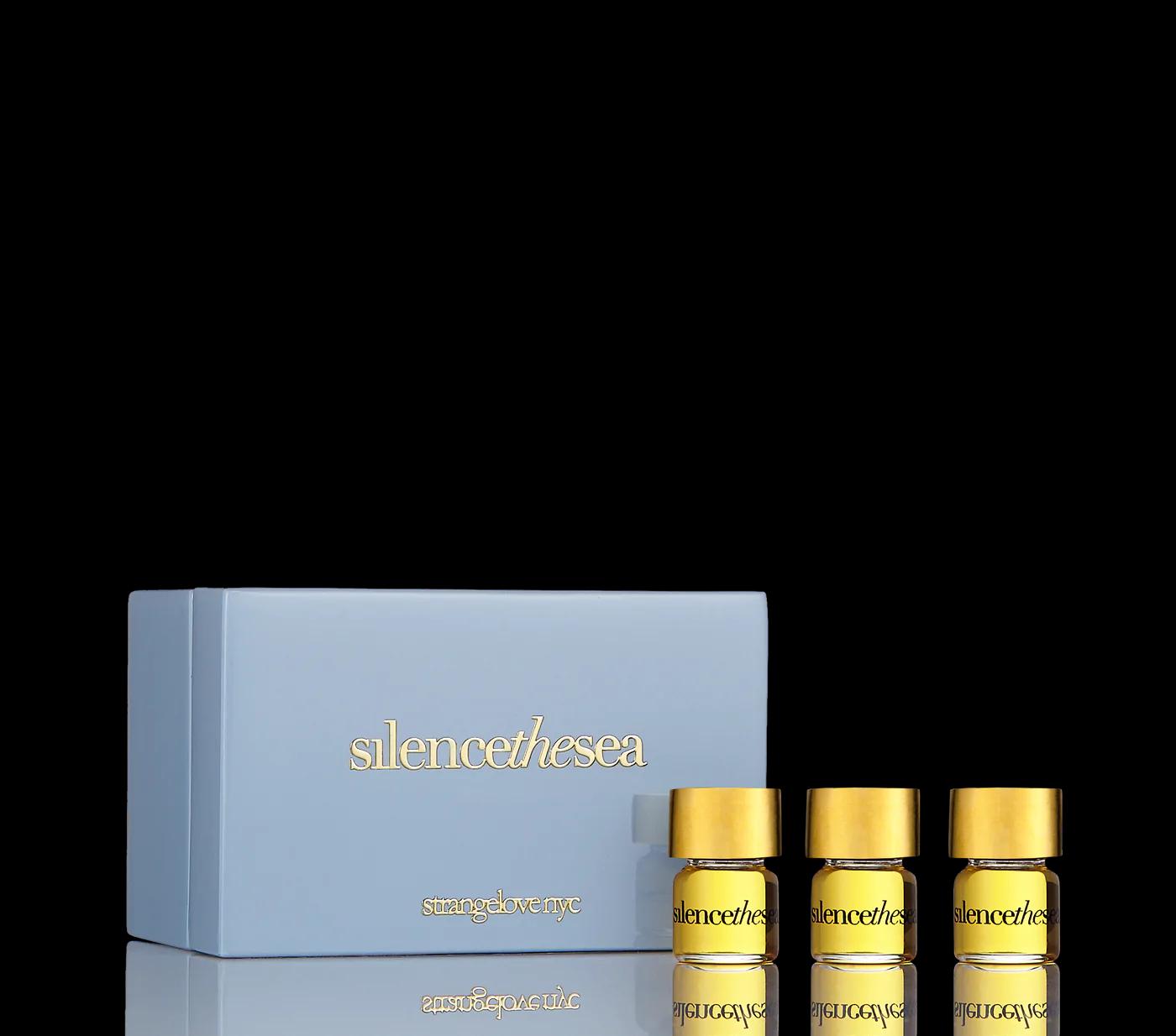 1.25 ml perfume oil of silencethesea suitable for the stylish necklaces of strangelove, but bottles can also be used separately. Comes in a beautifully lacquered box with print in golden letters.