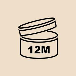 Voor de officiële houdbaarheid van je product kun je op de symbolen op je verpakking kijken. Soms staat er een klein potje met open deksel op met een getal erin. Dit getal staat voor het aantal maanden dat je product goed blijft ná opening, zie het voorbeeld hier waar je 12 ziet staan, dus 12 maanden. Als dit symbool er niet op staat, zou jouw product in de originele verpakking, koel, donker en droog bewaard volgens de cosmetica wetgeving gemiddeld 30 maanden goed moeten blijven.